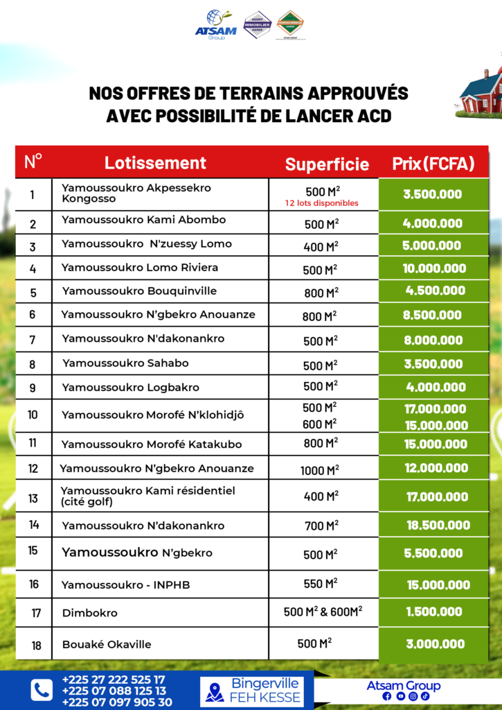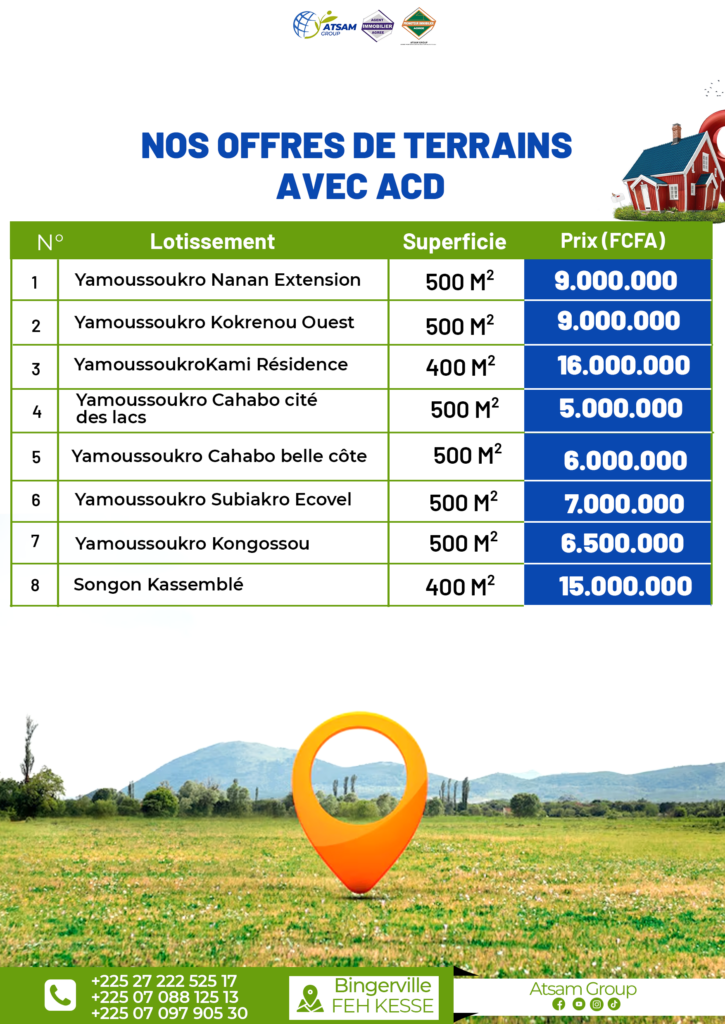 > Vente de terrains à Abidjan et partout en Cote d’ivoire avec ACD ou autres documents.